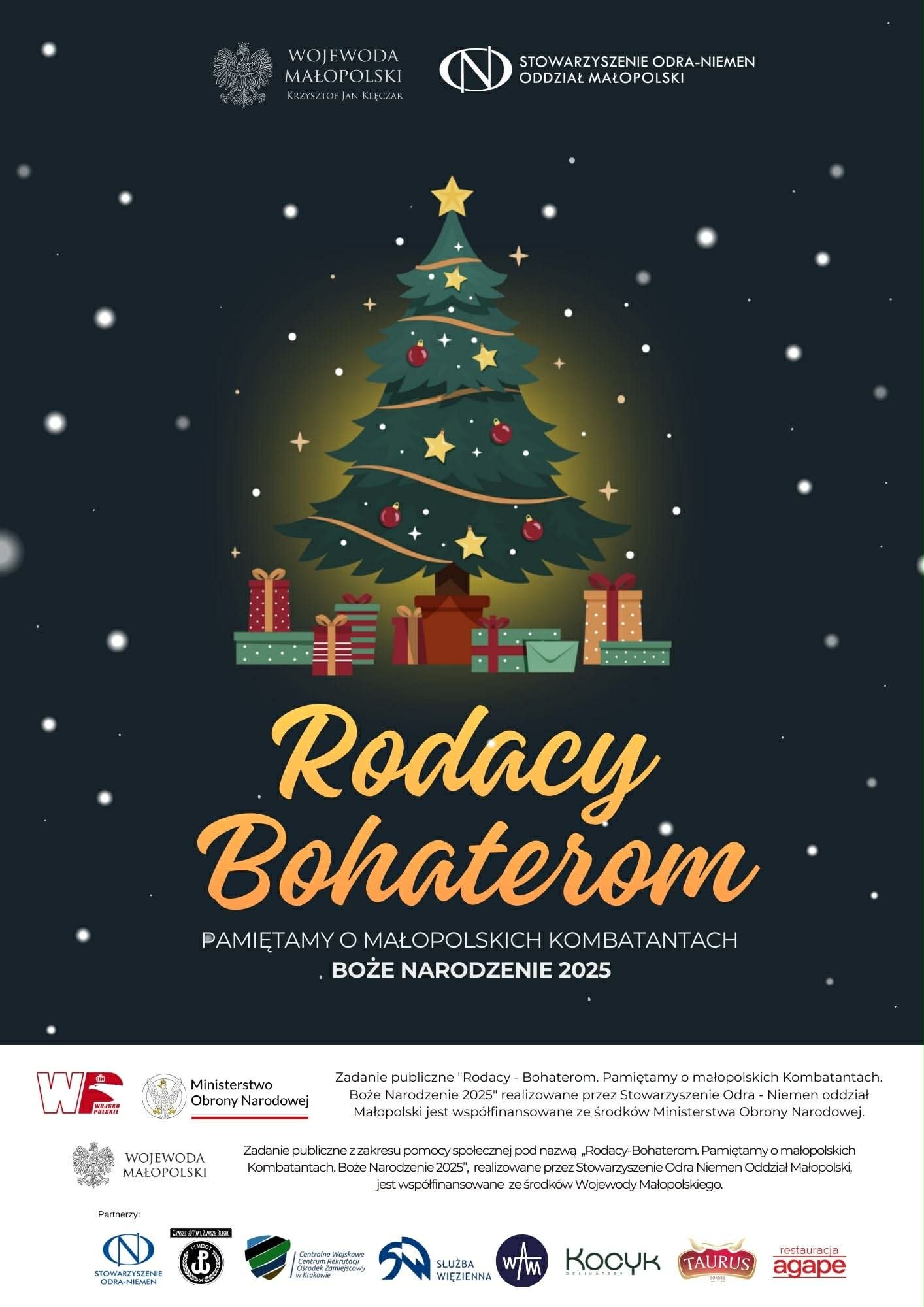 Zadanie publiczne „Rodacy-Bohaterom. Pamiętamy o małopolskich Kombatantach. Boże Narodzenie 2025” realizowane przez Stowarzyszenie Odra-Niemen oddział Małopolski jest współfinansowane ze środków Ministerstwa Obrony Narodowej.